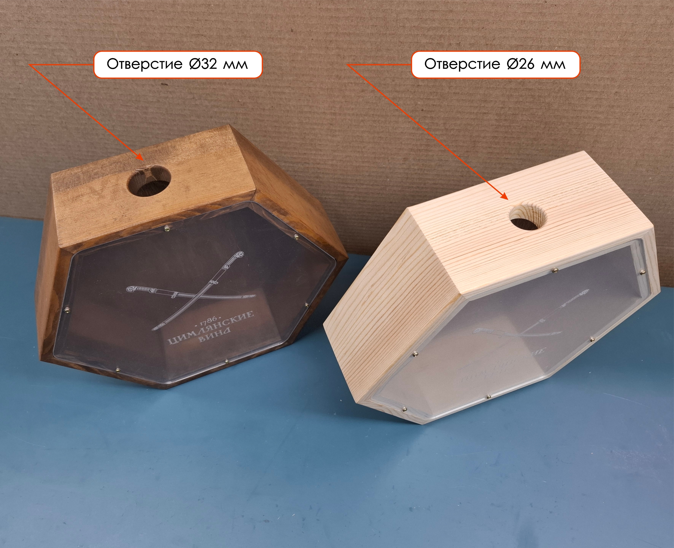 - по запросу отверстие под пробку можно сделать Ø32 мм (игристые вина),