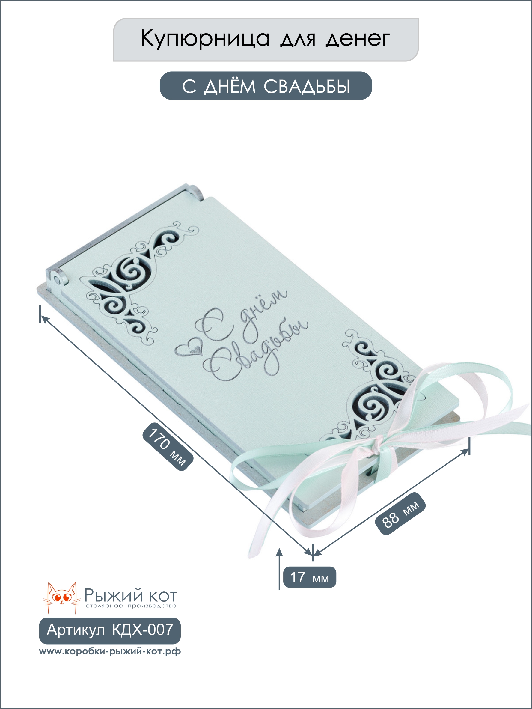 Купюрница деревянная, покраска акрил, с атласной леной, артикул КДХ-007